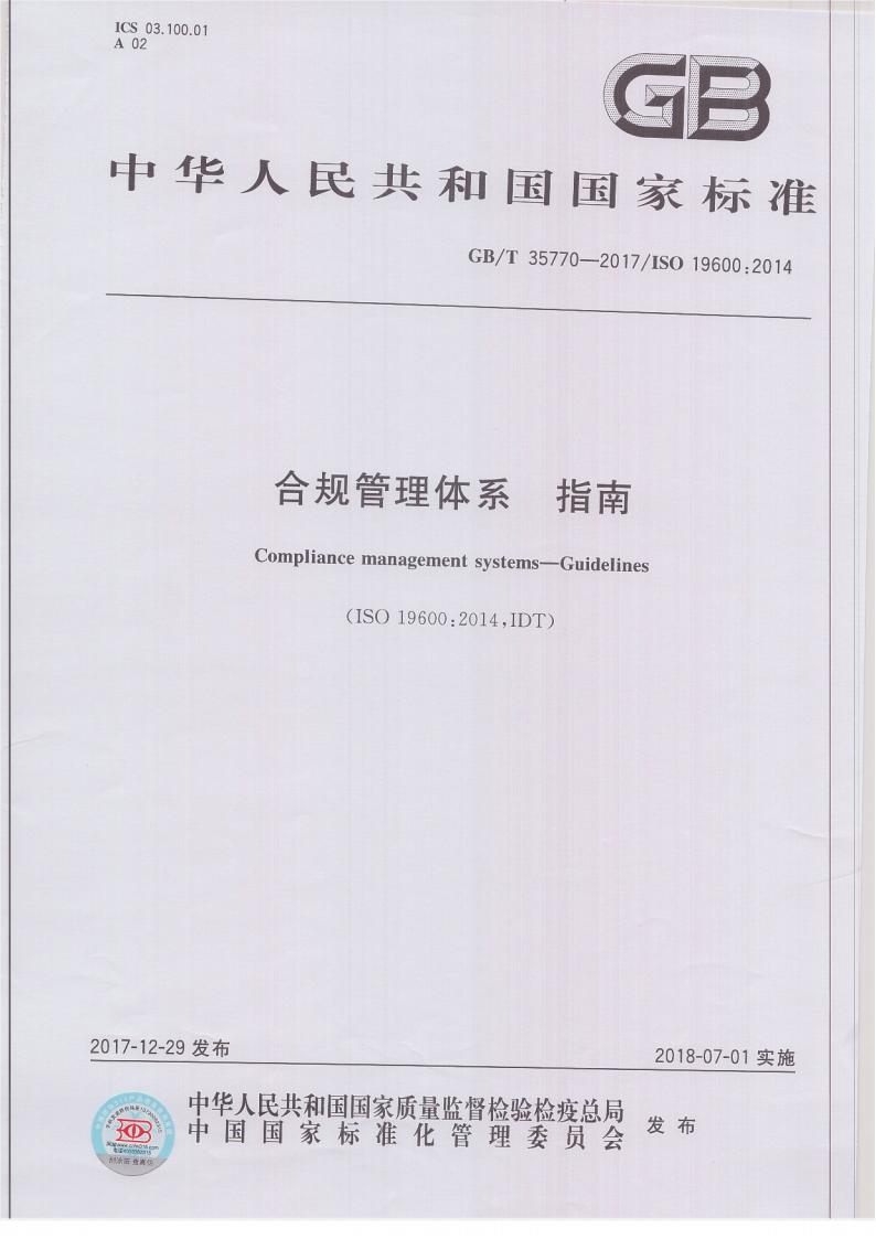 GB/T 35770-2017-IS0 19600:2014 合規(guī)管理體系 指南
